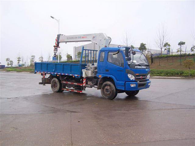 2.25米寬體駕駛室,玉柴135馬力發動機,該車配置的直臂式吊機:型號為PYSQ141,質量為2050kg,最大起升載荷為6300kg,選裝新前圍飾件和燈具.選裝ZL141吊具