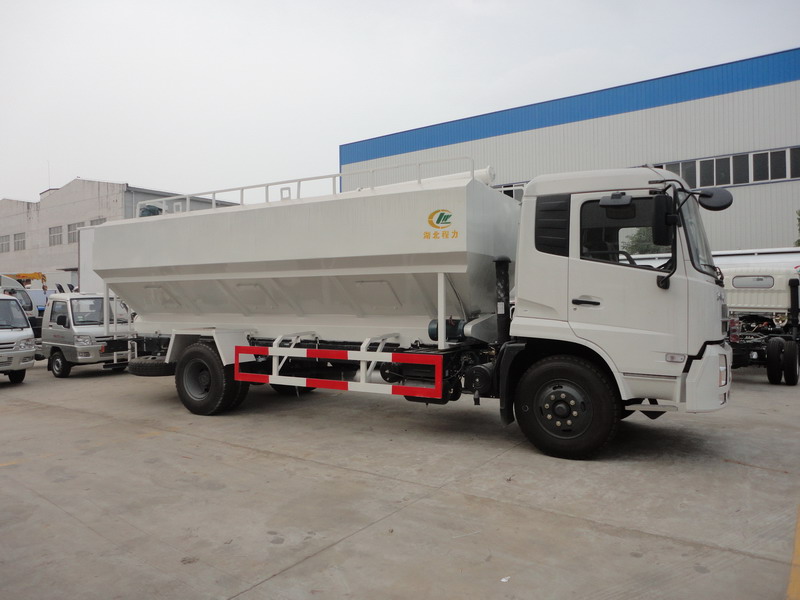 此款飼料車具體配置:選用東風天錦國四載貨車底盤DFL1160BX5,采用康明斯ISDe185 40國四發動機,10.00R20輪胎,改裝罐體16-20方:罐體采用高強度鋼板焊接而成,可以分成多個倉用于裝卸多種不同的飼料,并可根據用戶實際情況選擇電動絞龍式(三相電配套場所)或者加裝車載發電機. 程力專用汽車股份有限公司生產銷售散裝飼料車型有:3T散裝飼料車、5T散裝飼料車、8T散裝飼料車、11T散裝飼料車、15T散裝飼料車和22T散裝飼料車等多個噸位車型。