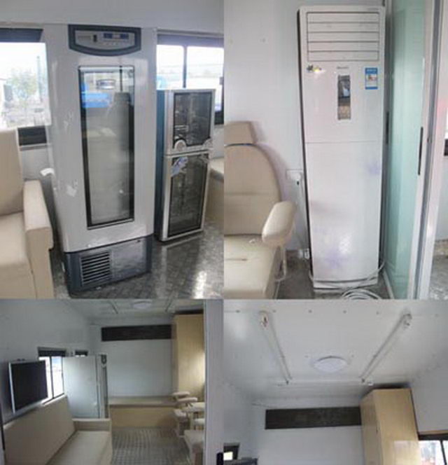 1.車身可噴涂或粘貼宣傳文字,標(biāo)識(shí);車身兩側(cè)可增加或封閉部分窗戶。頂部封閉不可開啟。2.專用裝置:血液冰箱、LED屏、電視、電源系統(tǒng)、沙發(fā)、休息床,后部LED屏為選裝件。3.該車側(cè)防護(hù)和后防護(hù)為裙板式結(jié)構(gòu),側(cè)面以及后部裙板與防護(hù)相干涉,故防護(hù)可豁免。側(cè)面裙板離地高度為350mm。后裙板離地高度為440mm。4.ABS型號(hào):3631010-C2000,4460046440,生產(chǎn)廠家:東風(fēng)電子科技股份有限公司制動(dòng)系統(tǒng)公司,威伯科汽車控制系統(tǒng)(中國(guó))有限公司。5.僅采用軸距4700mm的底盤。 |