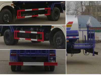 整車備注: 1、運輸介質: 水,介質密度:1000千克/立方米,罐體有效容積:7.55立方米,罐體外形尺寸(長×長軸×短軸)為(mm):4200×2000×1300;2、側防護及后下部防護裝置均采用Q235A材質,均采用焊接連接, 后部防護斷面尺寸(mm):120×50,后部防護離地高度(mm):470。3、ABS型號:ABS/ASR-24V-4S/4M,廠家:襄陽東風隆誠機械有限責任公司。4、文字噴圖位置和車輛顏色可變化。