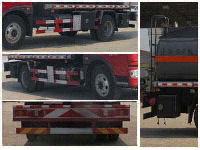 該車適用于運輸危險品。運輸介質品名:次氯酸鈉,液堿,氫氯酸,硫酸,氨水,密度分別為:1050千克/立方米,1040千克/立方米,1047千克/立方米,1045千克/立方米,990千克/立方米;類項號:8;罐體有效容積:8.8立方米,罐體外形尺寸(長×直徑)(mm):5200×1600。隨底盤選裝平頂駕駛室。防護材料:Q235A碳鋼,連接方式:左右側面及后部防護均采用焊接連接,后部防護斷面尺(mm):140×50, 后部防護離地高度(mm):450。僅采用底盤子午線輪胎和帶ABS的底盤,該車前輪安裝盤式制動器,前置排氣管,裝配限速裝置,限速80km/h。安裝帶有衛星定位功能的行駛記錄儀。ABS生產廠家/型號:上海萬捷汽車控制系統有限公司/VIE ABS-II。僅選用BF4M2012-16E5,BF6M2012-18E5,CA6DLD-22E5型號發動機,對應油耗值(L/100km)分別為:26.1,26.5,26.4。