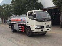 1, 該車適用于危險品運輸。類項號:3, 罐體有效容積:2.1立方米。罐體外形尺寸(長×長軸×短軸)(mm):①3000(實際長3900, 其中罐體前部900mm長用于安裝加油機用)×1230×850; ②(選裝加油機下置時)3900×1120×720。2, 防護材料:Q235A碳鋼, 連接方式:左右側面及后下部防護均采用焊接連接, 后部防護斷面尺寸(mm):100×50, 后部防護離地高度(mm):400。3, 可裝配加油機型號及生產企業:BL1111Z/珠海市貝林加油設備有限公司中山分公司, HS1812B/托肯恒山科技(廣州)有限公司, SKES-1112/恒和嘉華科技有限公司, SKDS-2001A/上海伯萊機械有限公司, SK20QF-111A, SK20QF-222A/鄭州三金石油設備制造有限公司, CS20D1110F/正星科技有限公司, JSK-70B1121CZ, JSK-70B1121C, JSK45B1121C/穩恩佳力佳(北京)石油化工設備有限公司, HT-YV60E/隨州市華特專用設備有限公司, XTST121BF1/邢臺正潤通科技發展有限公司。4, 僅采用底盤子午線輪胎和帶ABS的底盤; 該車前輪安裝盤式制動器, 前置排氣管, 裝配限速裝置, 限速80km/h。安裝帶有衛星定位功能的行駛記錄儀。ABS廠家及型號:襄陽東風隆誠機械有限責任公司/ABS/ASR-24V-4S/4M。5, 隨底盤選裝前面罩, 前組合燈具及前霧燈。車輛顏色可選, 文字噴涂位置可變化; 可選裝加油機下置, 選裝不帶走臺。危險貨物運輸車輛的類型(FL型車輛)。