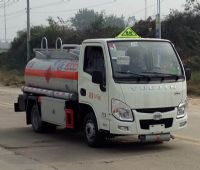 該車適用于危險品運輸。運輸介質:汽油, 類項號:3, 罐體有效容積:2.0立方米。罐體外形尺寸(長×長軸×短軸)(mm):2200(實際長3000, 其中罐體前部800mm長用于安裝加油機用)×1400×900。整車長/軸距/前懸/后懸(mm)對應關系:5180/2800/1080/1300, 5180/2650/1080/1450。可裝配加油機型號及生產企業:BL1111Z/珠海市貝林加油設備有限公司中山分公司, HS1812B/托肯恒山科技(廣州)有限公司, SKES-1112/恒和嘉華科技有限公司, SKDS-2001A/上海伯萊機械有限公司, SK20QF-111A, SK20QF-222A/鄭州三金石油設備制造有限公司, CS20D1110F/正星科技有限公司, JSK-70B1121CZ, JSK-70B1121C, JSK45B1121C/穩恩佳力佳(北京)石油化工設備有限公司, HT-YV60E/隨州市華特專用設備有限公司, XTST121BF1/邢臺正潤通科技發展有限公司。僅采用底盤子午線輪胎和帶ABS的底盤, 該車前輪安裝盤式制動器, 前置排氣管, 裝配限速裝置, 限速80km/h。安裝帶有衛星定位功能的行駛記錄儀。ABS型號:APG3550500A6, ABS生產企業:浙江亞太機電股份有限公司。危險貨物運輸車輛的類型(FL型車輛)。 隨底盤選裝駕駛室。