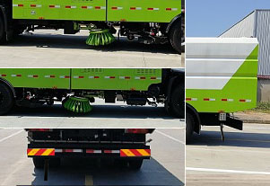 該車用于城市路面的沖洗,清掃作業.防護材料:Q235A碳鋼,連接方式:左右側面防護與專用裝置(掃刷)相干涉故豁免,后下部防護與副梁車架采用螺栓連接,后部防護斷面尺寸(mm):250×50,后部防護離地高度(mm):500.ABS,型號/生產廠家:3631010-C2000/東科克諾爾商用車制動系統(十堰)有限公司,ABS-E   4S/4M/生產廠為威伯科汽車控制系統(中國)有限公司.整車長/軸距/前懸/后懸對應關系為(mm):9100/5600/1400/2100;9100/5600/1475/2025;8700/5200/1400/2100;8200/4700/1400/2100;8000/4500/1400/2100;7900/4200/1400/2300;7900/3950/1400/2550;7650/3800/1400/2450.