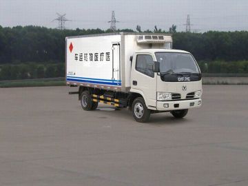 選裝前圍下面罩.廂體頂部封閉,不可開啟.選裝其它廠家功率相當的制冷機組.該車需要定期清洗消毒,消毒時啟動 自動噴霧裝置,定時噴灑消毒液實現對車廂內的消毒;在運輸醫療廢物時,可根據所運輸物品的性質,選擇開啟滅菌燈,殺滅廂體內的病毒;對一些要求低溫運輸 的物品,可開啟制冷機組,廂內溫度可在室溫至一40℃之間可調,符合醫療 物資運輸條件,實現安全運輸的目的。
