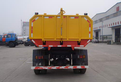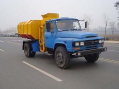 污泥自卸車應用于城市污泥清運及各種散碎物料之裝、卸、運輸,額定載質量為5噸。其污物桶提升傾卸機械能夠使污及其它物料自動裝入貨廂中,廂體后翻傾卸液壓控制,廂體后門可自動開啟和鎖緊.整車的自卸機構和貨廂后蓋,可以使污泥順利地傾卸并有效地防止了對城市環(huán)境的污染和減少物料途中損耗,液壓系統(tǒng)操作方便、靈活。