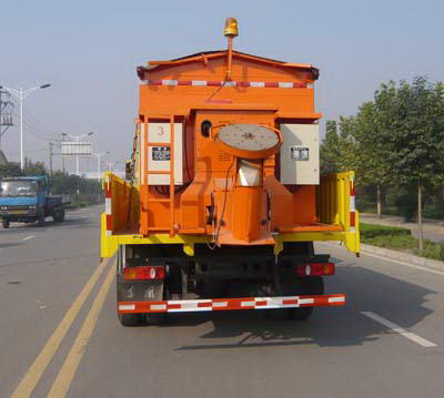 除雪車的用途是清除干道上的冰雪。除雪車通常使用自動(dòng)傾卸卡車的底盤作為基礎(chǔ),外加裝配專門除雪設(shè)備的改裝。該設(shè)備采用前推后撒的設(shè)計(jì)。除雪板采用自動(dòng)避障功能,且采用多段設(shè)計(jì),能有效避免沖擊引起的車輛側(cè)翻等危險(xiǎn);特制的橡膠鏟刀,耐磨、韌性好,避免損傷路面;另外配合高速公路施工,安裝有防止積雪飛濺的裝置,以提高作業(yè)效率,確保作業(yè)者的視野。