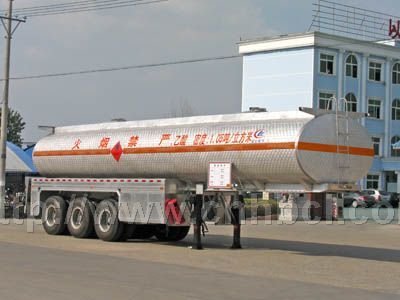 鋁合金半掛運油車 化工液體運輸半掛車 鋁罐車 ,是鐘對目前國家政策對超載,超限運輸日益嚴厲的管控而研發,采用歐美國家最流行輕量化鎂鋁合金制作,比普通碳鋼罐車重量輕三分之一,強度增強三分之一,以45方碳鋼罐對比測試,自重減輕4.2噸,以每年行駛10萬公里計算,費用減少10萬左右.且無超載,超限罰款之憂!