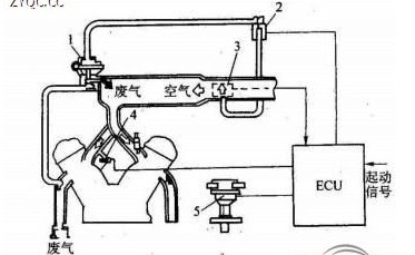 1-EGR閥、2-EGR電磁閥、3-節氣們、4-水溫傳感器、5-曲軸位置傳感器