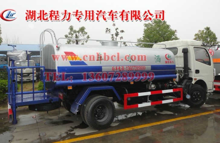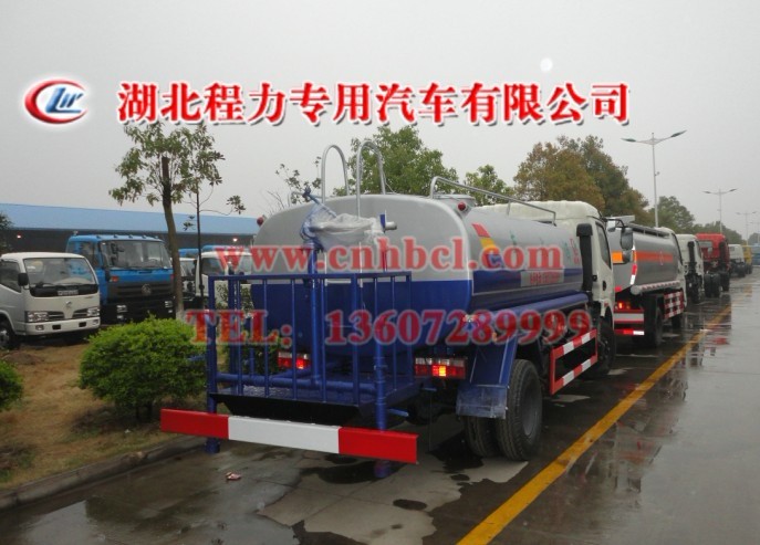 湖北程力灑水車的罐體為橢圓柱形或方型,用鋼板制成,整車罐體水倉為2-3室,中間隔板下端有通孔,倉內隔板具有防波作用。以減低汽車行駛時罐體液體的沖擊。水出口處裝有防旋板,以防灑水時產生漩渦影響誰呀。外表涂防銹漆及裝飾漆。
