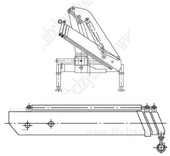 徐工折臂式隨車吊吊機組成構造:主臂和吊臂, 主臂和吊臂經過轉軸和折疊液壓缸聯合在一同, 折疊液壓缸的作用是使吊臂繞主臂轉動, 吊臂通常由固定臂和幾節伸縮臂組成。
