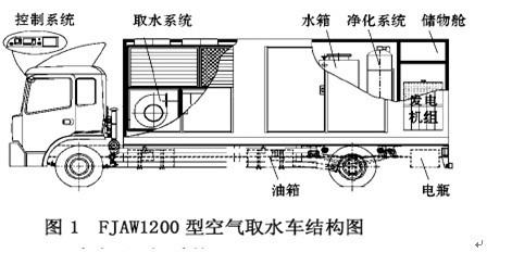 隨著現(xiàn)代文明的發(fā)展,工業(yè)化和城鎮(zhèn)化不斷加劇著對水源的污染。淡水供水不足已經(jīng)成為世界性難題,并且呈現(xiàn)愈來愈嚴重的趨勢。可是人類生存和社會發(fā)展需要有充足的淡水資源,盡管目前通過傳統(tǒng)的方式,如開采地下水、抽取河流水等暫可滿足人類的生活需要,但無法解決特殊環(huán)境或特殊情況下的淡水需要,因而開辟更多、更新的途徑以增加淡水供給有著非常現(xiàn)實的意義和需求。空氣取水車的成功研制為解決某些特殊環(huán)境下獲取淡水困難的情況提供了一條較好的途徑,它不受地域限制,發(fā)揮了專用車輛機動、靈活、便捷的特殊功能。