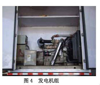 動力系統(tǒng)為空氣取水、水凈化等裝置提供動力來源(見圖4)。根據(jù)車輛設(shè)計及總布置的需要,FJAW1200型空氣取水車配置了120 kW/380 V柴油發(fā)電機組,不僅滿足了車輛的動力需要,而且在應(yīng)急環(huán)境下,車輛還可以對外提供動力。在能夠提供380 V電源的區(qū)域里,可以通過轉(zhuǎn)換直接使用外接電源,降低車輛運行的成本。