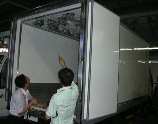 為了保證車廂內的貨物溫度,對于市內配送車輛,建議使用條形門簾,以保證快速卸貨時(在不關閉冷凍機組時),車廂內的冷氣不會快速散失出去。