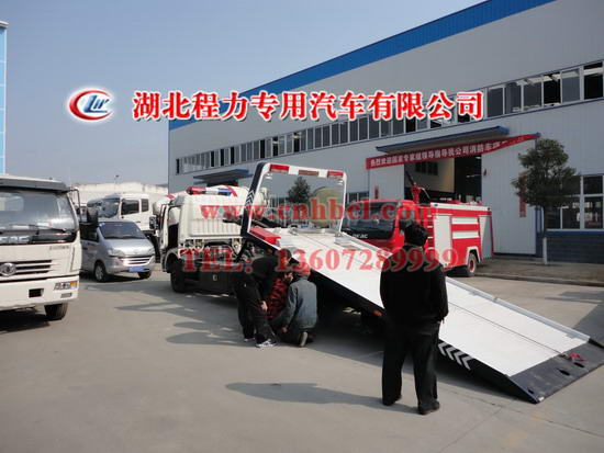 湖北程力專用汽車有限公司多利卡一托二平板清障車平板長度為5600mm,寬度為2300mm,配備4噸的液壓絞盤,平板具有鎖止功能,后托舉力度強(qiáng),伸縮行程長等特點。配備輔助輪,綁帶,警燈。