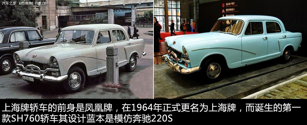 1958年,第一汽車制造廠將自己制造的紅旗小轎車作為禮物,送到了正在北京召開的黨的八大二次會議。毛主席當時很高興稱“中國也有自己的小轎車了”。這一消息,不僅牽動了國家領導人、與會代表的心,也大大激勵了上海汽車人,上海也要制造中國自己的小轎車。一年不到的時間,在鉗工、精工和電工的相互配合下,上海的第一輛轎車雛形初現。1960年12月,經過幾輪樣車的試制,仿制奔馳220S的鳳凰轎車定型。1964年改進后的鳳凰更名為上海牌SH760型轎車。