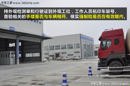 持外觀檢測單和行駛證到外觀工位,工作人員拓印車架號、查驗相關的手續是否與車輛相符、核實強制險是否在有效期內。查看車身外觀是否符合原樣、有無進行過改、車身上的安全保護裝置是否達到要求、反光紙的粘貼是否到位裝等。