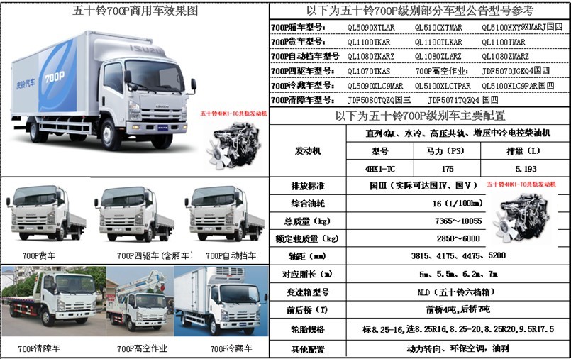 五十鈴700P系列專用車優點: