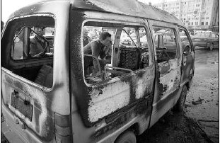 面包車被燒毀 王靜/攝