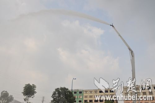 該舉高噴射消防車可載水10噸、泡沫2噸,曲臂最高可達16米,車載水炮既可噴射水,又可噴射泡沫,射程達75米。此次購置的舉高噴射 消防車,主要用于城鎮、工礦企業高層建筑以及石油、化工、油罐、倉庫等高大建筑物的火災撲救。該車采用折疊式臂架,全方位回轉,操 作簡便靈活,可以在距火源較遠的位置獨立完成滅火作業。