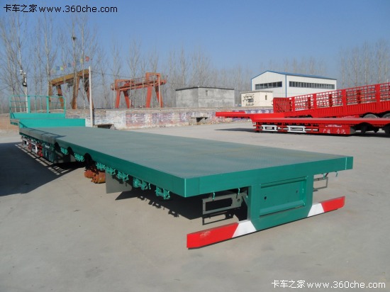 平板式半掛車車載部位無欄板,用途廣泛,主要用于中長途貨運運輸。