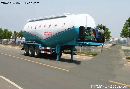 罐式半掛車載貨部位結構為罐式結構的半掛車。主要用于運輸液體、散裝物料和散裝水泥等。