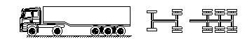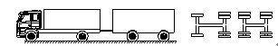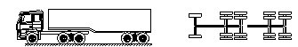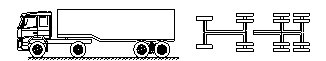 備注:1、由汽車和全掛車組合的汽車列車,被牽引的全掛列車的總重不得超過主車的總重。 2、除驅(qū)動軸外,上述圖示中的并裝雙軸、并裝三軸以及半掛車和全掛車,每減少兩輪胎,其總重限值減少4噸。 |