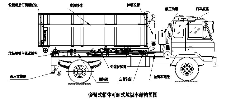 一、垃圾車箱體可卸(拉臂)式垃圾車使用說明書(套臂式)--結構簡圖