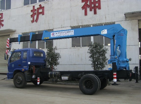 農用車隨車吊是根據農村用戶的特殊要求而制作的一款隨車吊。該車型一般是小噸位的底盤,但裝配的吊機比較大,所以在選擇底盤的時候,一定要注意大梁的厚度,和前后橋的大小。大梁越大越好,前后橋和彈簧鋼板都必須要加大。這種結構的隨車吊一般是安裝在車的尾部。我們公司采用的是加固通粱和增加獨腿來保證整車的穩定性。如果是常規安裝就和只加固通粱。特別注意的是:農用車隨車吊在沒有公告的情況下,是不能上牌的,所以在選擇該產品的時候,一定注意上牌的事情。
