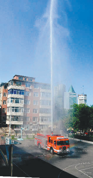 “由于壓力不足,以往的消防車一次性供水垂直只能達到近200米,
