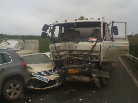 目擊者說(shuō),當(dāng)時(shí)因嵩待高速公路昆明往東川方向55公里處前不到2公里的地方發(fā)生2起追尾事故,交警在處理事故時(shí),將昆明方向駛來(lái)的車輛攔截,對(duì)事故進(jìn)行處理。這時(shí),后面一輛拉有10噸汽油的油罐車由于來(lái)不及剎車,司機(jī)只好向左超車,結(jié)果造成10車相撞。一位重傷者及幾名輕傷者均被送往尋甸第一人民醫(yī)院救治。截至17時(shí),昆明到會(huì)澤、東川、巧家、昭通路仍處于中斷狀態(tài),受傷人員又有增加,云南省急救中心醫(yī)護(hù)人員也趕到現(xiàn)場(chǎng)增援。