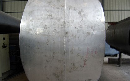 從車間工人了解到,鋁合金油罐車生產需要一定技術才能完成,它需要采用氬弧焊技術來完成制作,氬弧焊技術是在普通電弧焊的原理的基礎上,利用氬氣對金屬焊材的保護,通過高電流使焊材在被焊基材上融化成液態形成溶池,使被焊金屬和焊材達到冶金結合的一種焊接技術,如圖為在生產車間細拍公司鋁合金油罐的圖片,它還沒有上漆,剛剛完成焊接,我們程力汽車公司的鋁合金材料焊接技術已經非常成熟,所以焊接的非常完美,如圖1:
