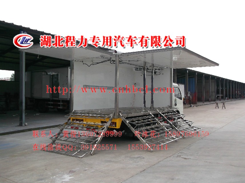 蔬菜售賣車后部可選裝液壓式升降尾板,方便裝卸貨物,整車更設計了車載220V電源系統(也可接外部電源系統,減輕汽車電瓶壓力)為收銀機,電子稱,電冰箱等220v電子產品供電,加裝LED顯示屏,實時顯示物價,方便購買,還可加裝儲水裝置和洗手池,整體功能強大、齊全。 LED顯示屏實時顯示菜價,便于購買,菜價通過電腦軟件統一發送刷新,方便管理。四層折疊式貨架不用時可折疊翻轉到車廂,不占用車廂裝貨空間。使用時著地展開貨架,每層貨架向下傾斜形成良好的展示效果。使用方便快捷。 國務院下發穩定消費價格和促進蔬菜生產等相關通知后,政府到農牧部門都出臺了切實有效的措施促進蔬菜生產,保障市場供應和價格穩定。全國各地都以建立起蔬菜配送中心及大型社區直銷中心。購置專用蔬菜配送車輛,也是惠民政策的一項重要工程 。
