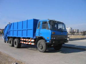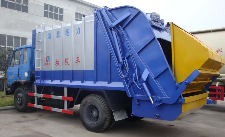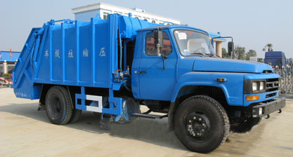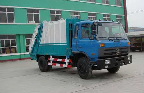 東風153壓縮式垃圾車整車外形尺寸長8.56米,寬2.49米,高3.32米,可配康機190馬力發動機和玉柴180馬力發動機,上戶噸位:6噸,垃圾箱有效容積:10-12立方米,具有垃圾收集方便、高效、具有自動反復壓縮以及蠕動壓縮功能、壓縮比高、裝載量大、作業自動化、密封性好的特點。