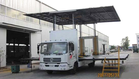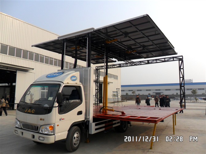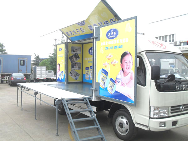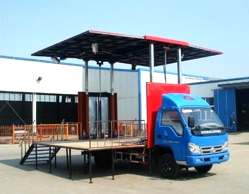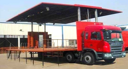 流動舞臺車是一種方便流動演出的、并可展開成為舞臺的特種汽車,移動、搭建方便快捷,適合各種流動演出團隊、流動促銷路演等,作為舞臺,也可供文藝團體演出和企業做形象產品宣傳之用。使用時展開方便快捷,外表美觀大方,可用作舞臺背景,使用性能較強。