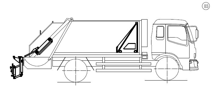該系列車型可選裝垃圾桶液壓翻轉機構,適用于120升、140升、240升的塑料垃圾桶和350升的金屬垃圾桶。