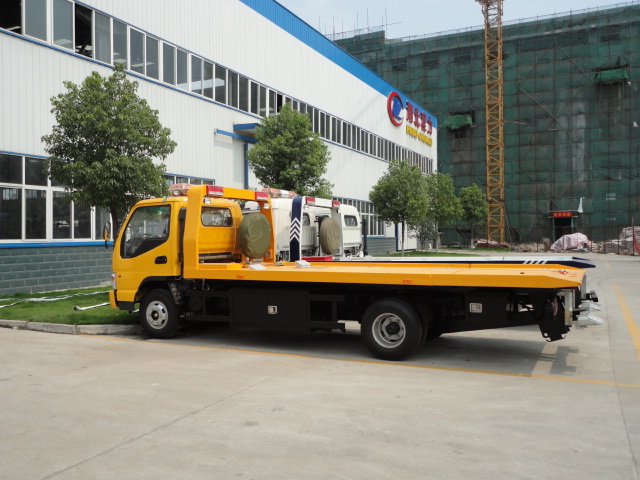 上裝部分:清障車一拖二型,拖背兩用,配備長警燈,平板采用碳鋼花紋板,板長5.6米,寬2.3米,此車采用1個4噸液壓絞盤,鋼絲繩長度20米,該車配備4個捆綁帶,兩個小車(輔助輪),托叉座,托叉一對,鏈帶一條,適用于小轎車和小型客車的施救。其余廠內(nèi)標(biāo)準(zhǔn)配置制作。l