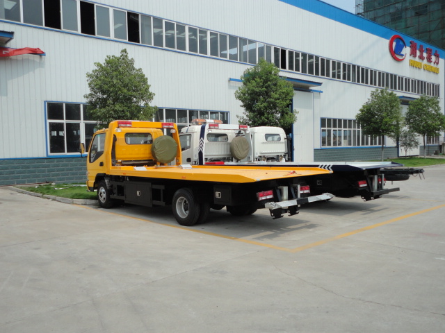 江淮一拖二平板清障車: 江淮清障車一拖二型,拖背兩用,配備長警燈,3P2A折疊式磨具沖壓板,板長5.6米.