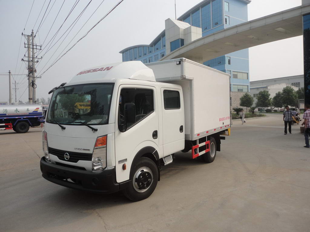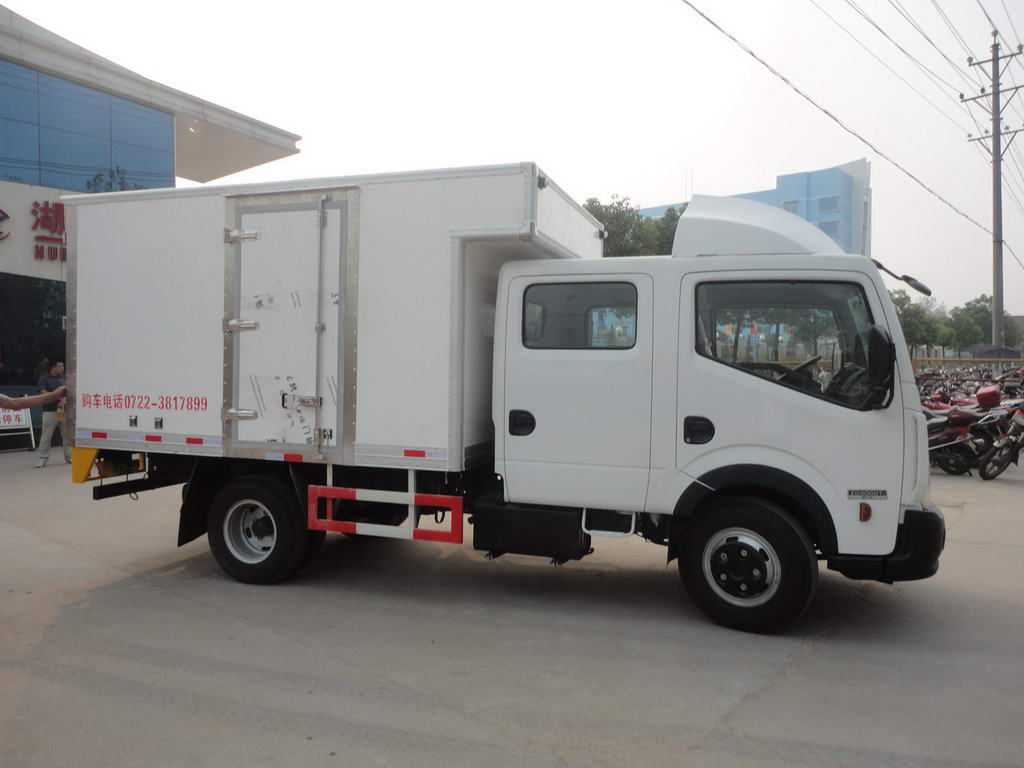 冷藏車保溫汽車隔熱車廂是所有冷藏車保溫汽車的重要裝置。作為車廂,它具備廂式車廂的共性,但又要求它具有良好的隔熱保溫性能。隔熱車廂是由頂板、底板(地板)、左右側壁、前壁、后壁(后門框)和門組成。由于要求車廂具有隔熱保溫性,因此它的骨架具有承載與斷熱的雙重功能。其中以承載為目的的骨架為主骨架。這種骨架一般選用強度和剛度較高的金屬(鋼、鋁型材)結構。而以斷熱為目的骨架(稱為輔助骨架)一般選用非金屬材料。常見的有木頭、膠合板、玻璃鋼、工程塑料等,它可裝于主骨架的外側或內側。車廂的內外蒙皮分別與主骨架和輔助骨架相聯,其間形成了填裝隔熱材料的空間。因此,主輔骨架共同完成了隔熱車廂骨架的全部功能。外蒙皮多為平板形,但左、右側壁外蒙皮常壓成瓦楞形或半圓形,這種具有加強筋的外蒙皮既可增加廂壁強度和剛度,又可增加美觀。內蒙皮一般為平板形。為了防止冷凍胴體(整塊凍豬、牛、羊肉等)貨物撞壞內蒙皮,有的車廂還在內蒙皮內表面再裝上木夾板內蒙皮。內外蒙皮常用材料有鋼板、鋁合金板、不銹鋼板、玻璃鋼板等。一般金屬蒙皮厚度為0.5~1.5mm,非金屬蒙皮厚度為1.5~3mm。蒙皮與骨架連接方式通常采用拉鉚聯結。