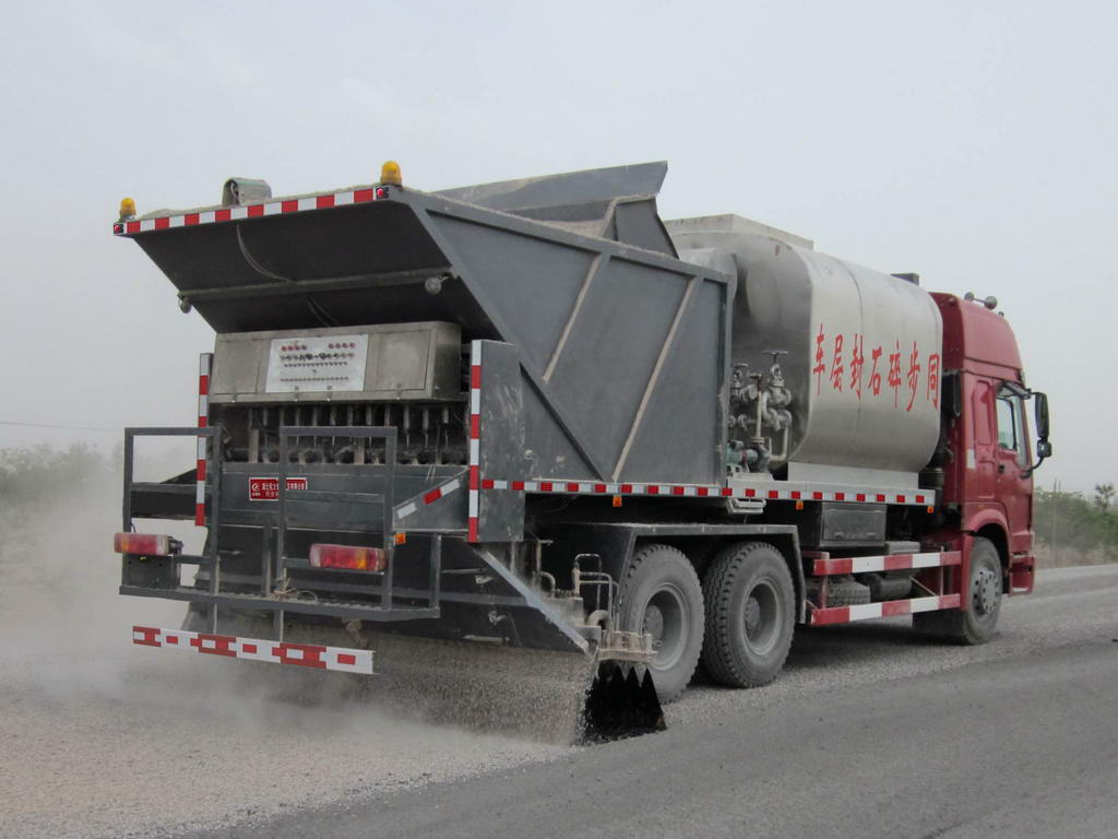 同步碎石車主要有瀝青灑布系統、石料撒布系統、電氣操作系統、輔機系統組成。