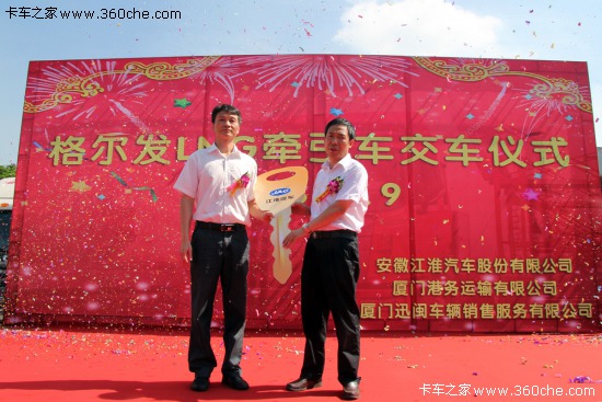 2013年7月9日,在廈門港務海天碼頭舉辦了江淮格爾發LNG牽引車交車儀式,現場江淮格爾發向廈門港務運輸公司一次性交付了30臺LNG牽引車。
