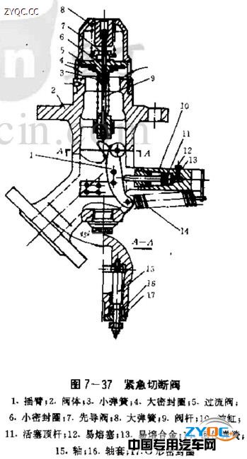 緊急切斷閥是液化石油氣罐車的主要安全裝置之一。它的作用是:當(dāng)管路系統(tǒng)突然破損,液化氣體大量泄漏時進行緊急止漏;當(dāng)液化氣大量泄漏而釀成火災(zāi),操作人員又無法接近罐車時,緊急切斷閥上的易熔合金迅速熔化,自動切斷液化氣體的外泄通路。