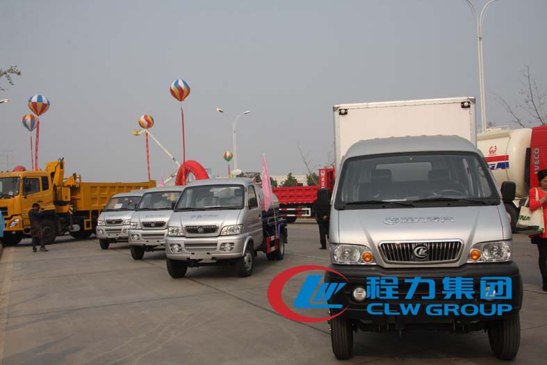 在10月28日舉行的專用汽車展覽會上,程力公司推出自吸自卸運糧車、粉粒物料運輸車、LED廣告車、平板運輸車、高空作作業車、電動掃路車,以及程力威整車全系列:廂式車、吸糞車、灑水車、垃圾車等產品。
