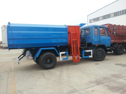 5、擺臂式垃圾車適用全國通用垃圾斗,帶自卸功能,液壓操作,垃圾斗可自吊上吊下,擺臂一次工作循環時間:60S。該車的特點是貨斗與車體分開,能實現一臺車與多個貨斗聯合作業,循環運輸,充分提高了車輛的運輸能力,特別適用于短途運輸,如環衛部門對城鎮垃圾的清理、運輸等。