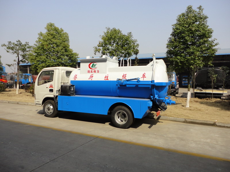 7、餐廚垃圾車又稱餐余垃圾車余廚垃圾車或者泔水車,餐廚垃圾車是垃圾車中的一種,是用于收集和運輸生活垃圾、食品垃圾(泔水)及城市淤泥的專用車輛。隨著我國餐飲業的發展,我國現有酒店、餐館近350萬家,每天產生的餐廚垃圾數量十分驚人,其收集轉運方式多樣。以餐廚垃圾為對象的餐廚垃圾車也飛快發展。其特點:改裝部分具有裝、卸垃圾自動化程度高、工作可靠、密封性好、裝載容積大、操作簡便、作業過程密閉,無污水泄露和異味的散發,環保性好等特點。可配裝載不同規格的標準垃圾桶,具有廣泛的適用性。餐廚垃圾車高效、清潔的是垃圾收、運專用車輛。餐廚垃圾車不僅優化了居民居住的環境衛生,減少了空氣中的餐廚垃圾臭味,減少孳生蟑螂、細菌的可能, 改善了環衛作業環境,減少垃圾的四處分散造成的污染。