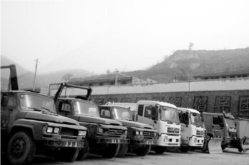 接到線索以后,記者前往寶塔區垃圾清運所了解情況。在清運所的后院里記者看到院子里停了數十輛車輛,均未懸掛車牌。只有幾輛老式車輛的車頭下側自行噴涂了三位編號,而這些車輛與大街上行駛的垃圾清運車樣式類似。