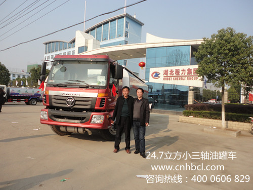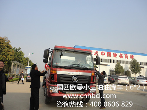 2014年熱銷中的小三軸油罐車,河南客戶來廠提車國四油罐車,這位客戶是第四次來我們廠提車了,此款小三軸油罐車選用歐曼原廠底盤,整車型號(hào):BJ5253GYY-XA,底盤型號(hào):BJ5253GYY-XA,采用歐曼ETX2200平頂駕駛室,國四康機(jī)210馬力發(fā)動(dòng)機(jī),大同七檔變速箱帶取力器,10噸后橋, 10.00R20輪胎,380L鋁合金油箱、空調(diào)、前盤制動(dòng),ECU電子限速,ABS,排氣管前置;小三軸油罐車罐體容積:24.7立方,罐體采用武鋼國標(biāo)鋼材制作,罐體平分二倉二個(gè)罐口,帶一個(gè)三通連接,帶泵,二個(gè)2.5寸自流閥,罐體顏色金屬漆,貼“爆”及反光標(biāo)貼。下面小編展示一下些款小三軸油罐車靚照: