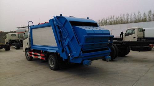 3、壓縮式垃圾車產(chǎn)品說明: 壓縮式垃圾車采用機(jī)電液一體化技術(shù),主要通過垃圾廂、填裝器、推鏟、液壓系統(tǒng)等專用裝置,借助機(jī)、電、液聯(lián)合自動控制系統(tǒng),通過車廂、填裝器和推鏟等專用裝置,實(shí)現(xiàn)垃圾倒入、壓碎或壓扁、強(qiáng)力裝填,把垃圾擠入車廂并壓實(shí)和推卸.。基本配置前推后壓翻,帶污水廂。