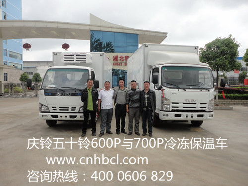 2、慶鈴五十鈴600P冷藏車底盤型號: NKR77PLPACJAY,整車型號: XKC5073XLC,五十鈴4KH1-TC 96KW/130馬力發動機,五十鈴MSB 5檔變速箱,700-16尼龍胎.帶空調,軸距3815mm, 貨廂尺寸:(長x寬x高mm): 4990*1930*1790mm .上戶2.99噸.冷藏廂體采用內外飾玻璃鋼,內部夾層保溫材料采用聚氨脂復合發泡材料; 厚度8厘米,裝配韓國韓亞牌非獨立制冷機組,廂內溫度可達-18度.右側開一單側門。