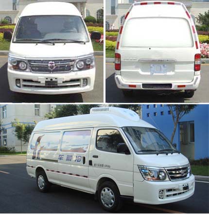金杯疫苗冷藏車配置采用金杯海獅翔運系列2.0U經濟型高頂車型,2.0排放量,沈陽新光4G20D4B發動機(德國技術),標配鋼絲胎,車型為客貨多功能車型,此款金杯海獅翔運系列面包冷藏車產品特點: